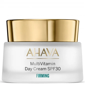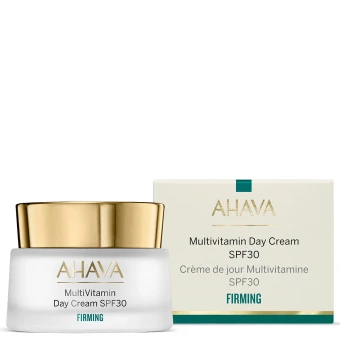 AHAVAs MultiVitamin Pro-Firming Day Cream SPF30 ist eine straffende, feuchtigkeitsspendende Tagespflege mit einer Mischung aus sorgfältig ausgewählten Vitaminen und Mineralstoffen, für eine gut mit Feuchtigkeit versorgte und straffe Haut. Formuliert mit Anti-Aging-C, Pro B5, B3 und Vitamin-D-Vorstufe und AHAVAs Osmoter™ sowie einem UVA/B-Schutz, um Zeichen der beschleunigten Hautalterung vorzubeugen.