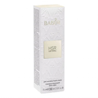 Diese luxuriöse, besonders reichhaltige HSR lifting Schaum-Maske setzt, auf Basis von aktuellsten Forschungsergebnissen, neue Maßstäbe im Bereich des kosmetischen Liftings bei BABOR. Sechs Hochleistungswirkstoffe wirken gegen alle Faltenarten: Gravitations-, Plisee- und Mimikfalten, wie zum Beispiel die Zornes- und Nasolabialfalte. Durch Kollagen- und Elastinabbau sowie durch Verzuckerung der Kollagenfasern entstandene Falten werden gemildert. Die Entstehung neuer Falten wird durch ein natürliches Glucosid verlangsamt, sodass die Haut länger jünger erscheint. Gleichzeitig wird der Hautton ausgeglichen und Hyperpigmentierungen abgeschwächt. Die Haut erfährt ihr persönliches Lifting: sie zeigt sich sichtbar geglättet und praller.