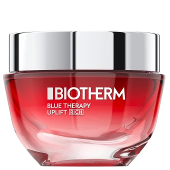 Blue Therapy Red Algae Uplift Rich von Biotherm hat einen intensiven Liftign-Effekt und zaubert glatte Haut. Die hautstraffende Creme enthält kraftvolle Wirkstoffe aus Algen, sodass reife, trockene Haut vor äußeren Einflüssen geschützt ist und intensiv gepflegt wird. Der enthaltene Rotalgenextrakt hat eine äußerst straffende Wirkung. Die Konturen des Gesichts werden so Tag für Tag definiert. Zudem verleiht er einen strahlenden Teint. Kollagen-Bausteine sorgen dafür, dass die hauteigene Kollagenproduktion angeregt wird. Dadurch wirkt reife, trockene Haut elastisch, gestrafft und jugendlich. Zeichen der Hautalterung, wie Falten sowie feine Linien, wirken gemildert. Die sanfte Formel ist frei von Silikonen und Mineralölen und umhüllt die Haut somit sanft. Für sichtbar geliftete Haut und einen rosig frischen Teint.