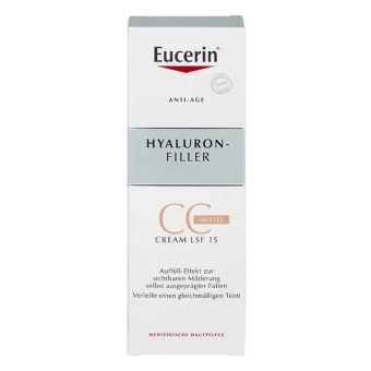 Die Eucerin HYALURON-FILLER CC Cream Mittel zieht schnell ein. Sie kann entweder über die verwendete Tagespflege oder anstelle dieser aufgetragen werden.