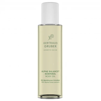Das ALPINE BALANCE Körperöl umhüllt Körper, Geist und Seele mit einer sinnlichen Duftkomposition aus hochwertigen Ölen und kostbaren Alpenblumenextrakten aus Arnika, Schafgarbe und Enzian. Natürliches Distel-, Avocado- und Jojobaöl verhindern den Feuchtigkeitsverlust der Haut und machen sie schön geschmeidig.