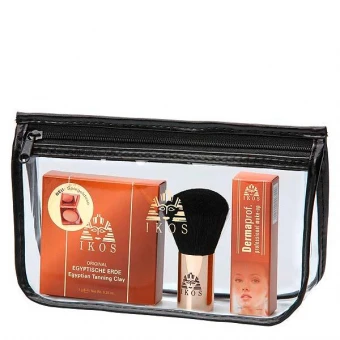 Das Set besteht aus Dermaprof. Professional Make-Up (10 ml) + Egyptische Erde (7 g) + praktischer IKOS Auftragepinsel verpackt in einem transparenten Täschchen.