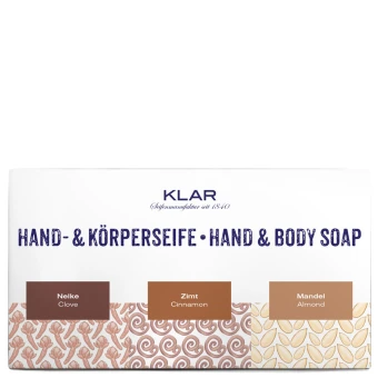 Klar’s Geschenkset mit Gewürzseifen enthält eine Trilogie der aromatischsten Hand- und Körperseifen aus unserem Sortiment. In einer schönen Geschenkbox erwartet sie ein herrlich würziger bis süßer Duft.